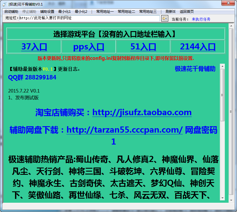 花千骨极速辅助是极速工作室最新发布的专为花千骨页游制作的一款游戏辅助工具,有了这款花千骨辅助,玩家可以在游戏中解放双手,更加轻松愉快的玩游戏。喜欢玩花千骨的朋友快来试试这款极速辅助吧【软件特点】