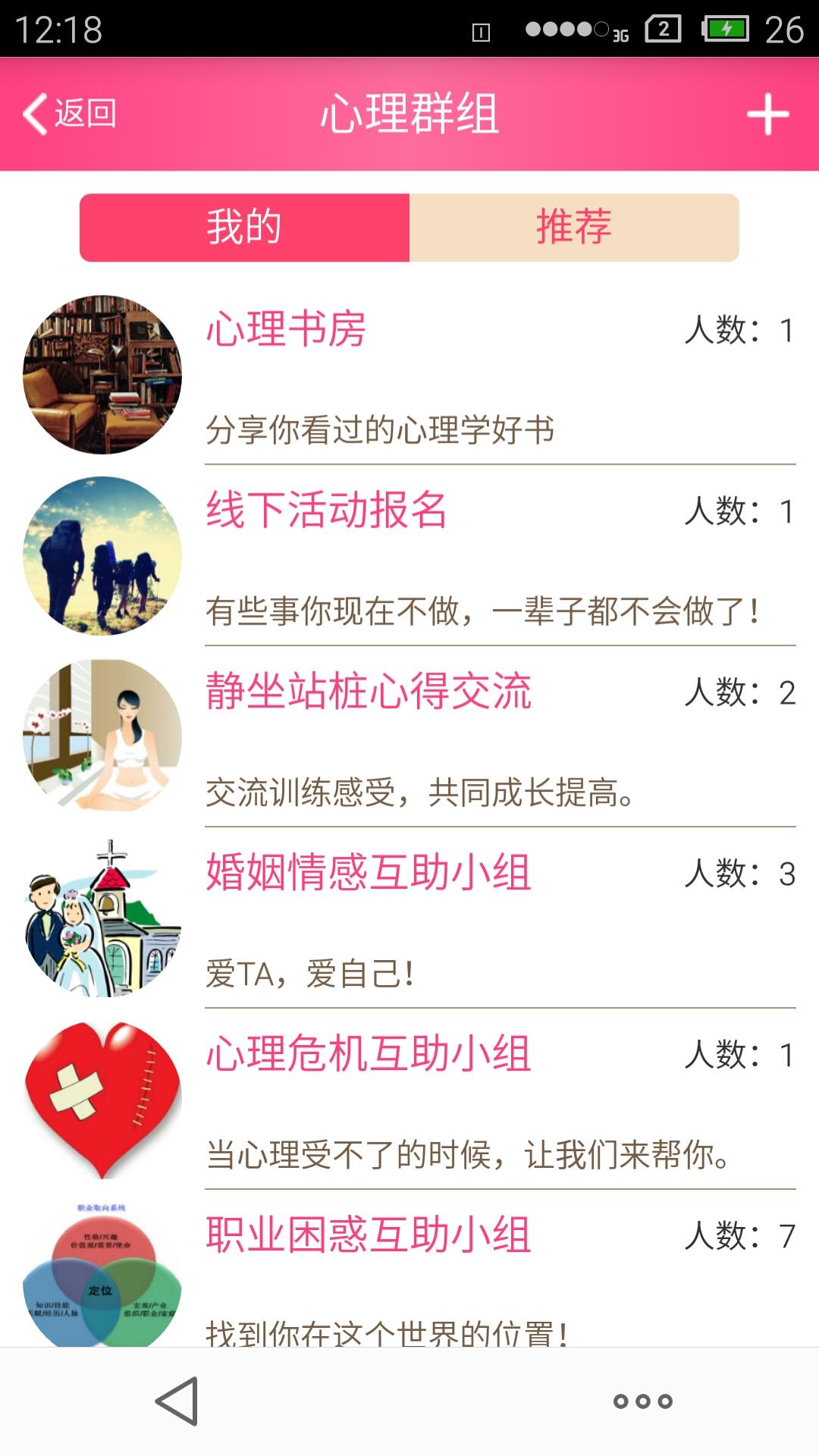 心理群组:你、我、TA大家一起聊聊心情,互帮互助;