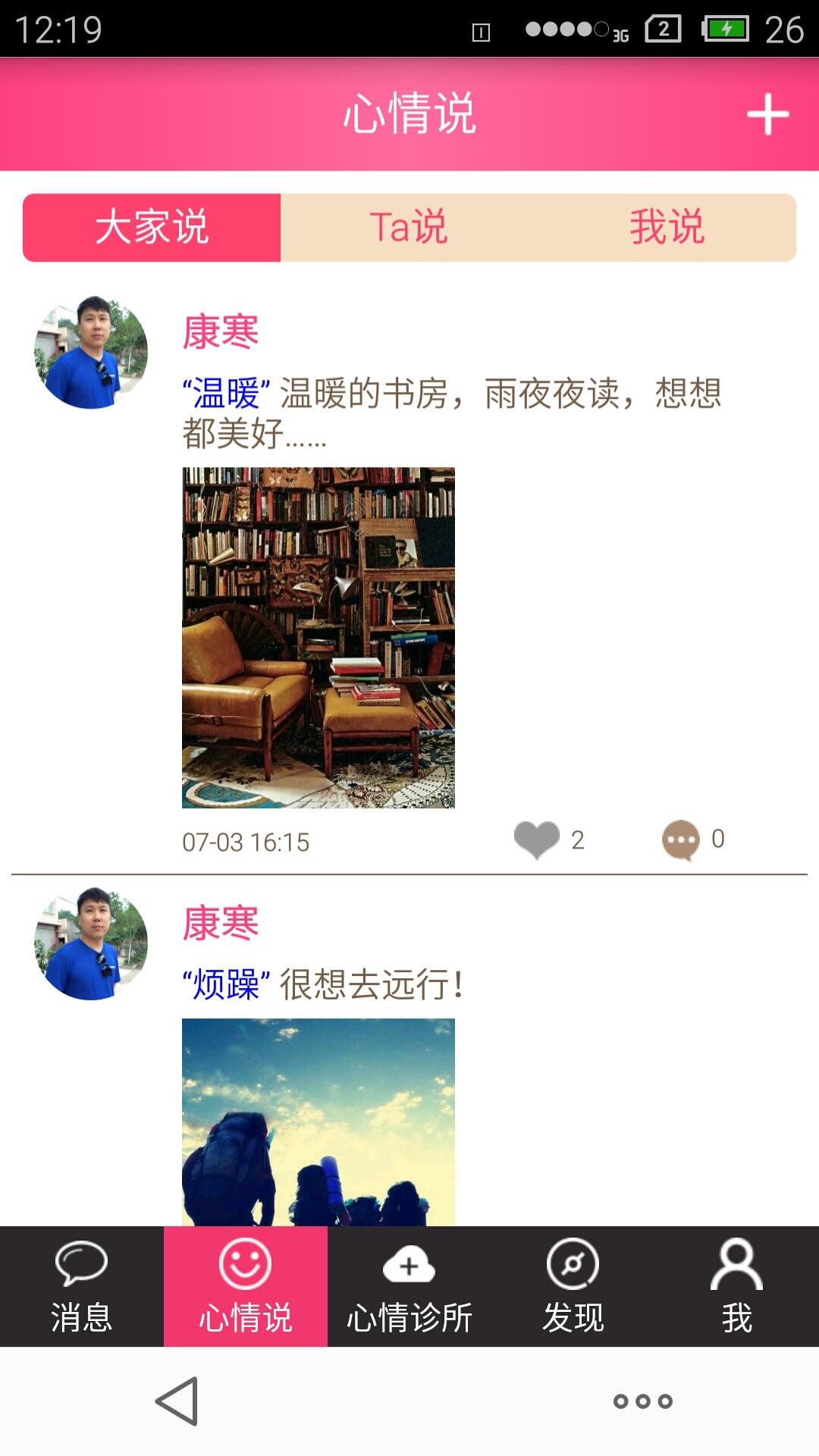 心情说:记录你的喜怒哀乐,有人关心,有人疼;心情墙:我的、TA的、大家的,喜怒哀乐有人陪;