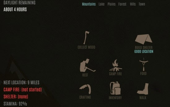 野外生存 Survive - Wilderness survival是一款模拟野外生存的游戏,游戏中玩家需要做的就是如何存活下来,怎么支配时间,怎么获取食物都要靠玩家自行决定。游戏中也有很多工具,工具之间有联系,有些需要组合起来用。游戏中不仅仅是野外生存,还有城市、森林等多个地形的生存。游戏主要考验玩家的思考能力和野外生存知识的掌握。游戏很有趣,只不过是英文。