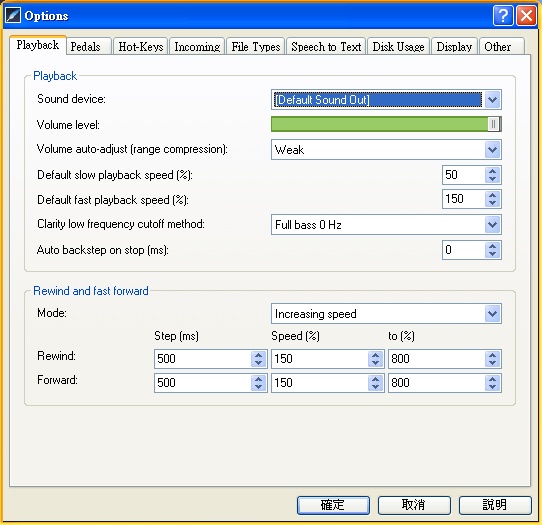 Express Scribe V5.61 英文绿色免费版 Express Scribe具有变速播放、踏板操作、语音辨识、档案管理等特色。播放压缩的wav及dct档案、变速(声调固定)录放、用踏板或是系统热键控制播放、可在MicrosoftWord以及其他主流文书处理应用程式上使用。 此外可搭配语音辨识软体(如Dragon Naturally Speaking)自动将文字转换為语音。此外可搭配语音辨识软体(如DragonNaturallySpeaking)自动将文字转换为语音