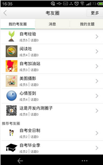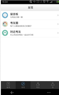 3、交流社区:考友圈、留言板、找同专业或附近的考友等等。