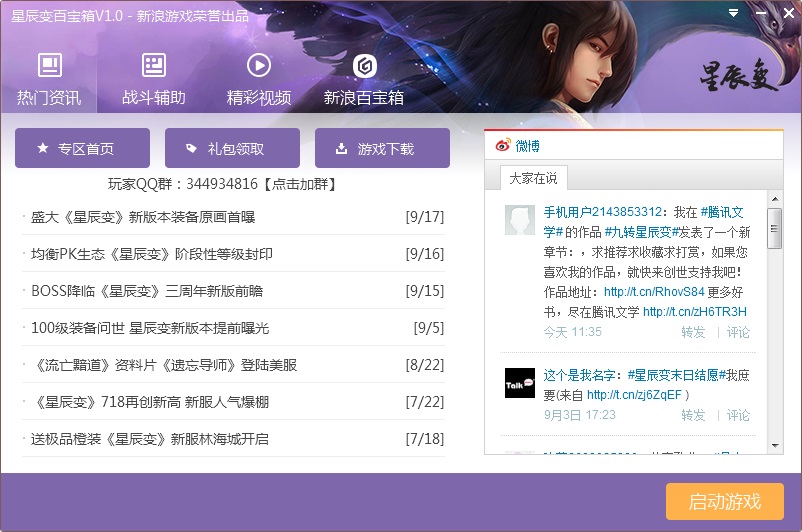 星辰变百宝箱(星辰变辅助工具)是新浪游戏为星辰变游戏打造的一款辅助工具,主要提供了热门资讯、战斗辅助以及精彩视频等功能。
