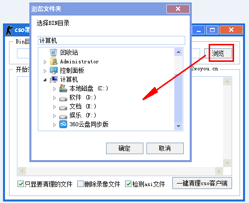 打开“cso黑枪手客户端清理工具”后,如果未找到bin目录,请玩家手动选择