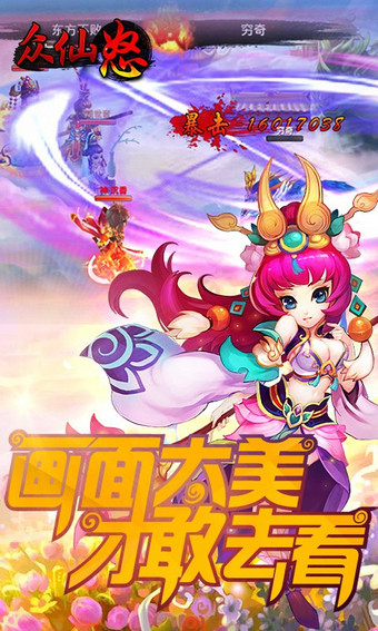传统玩法新思路你能通过对阵型的排列、对装备的组合,用有限的资源挑战无限的关卡!现在就下载《众仙怒》,享受排兵布阵的战略乐趣!招募神话中的伙伴,利用伙伴的技能,闯过更多的关卡!多种模式任你挑战简单的主线任务、需要技巧的英雄副本,无尽的任务、无尽的挑战赋予您无尽的乐趣!把握整个战场,写出一幕只属于你的战斗剧本,让这场战斗成为你剧本的完美演绎!