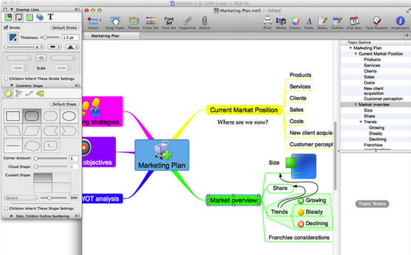 Novamind for mac是一款非常优秀的思维导图软件,它将思维导图和PPT融合在一起,支持思维导图放映演示,Novamind for mac软件安装简单,运行流畅,支持直接导出思维导图为PDF、PNG、Word、powerpoint、MindManager文件、纯文本、OPML或者MS Project文件。