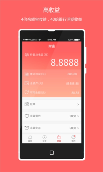 米袋零钱:随时提现,4倍余额宝收益,1元起投,每日派息,收益复投;
