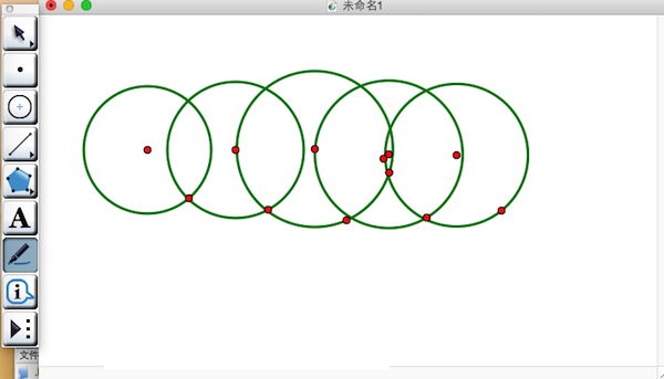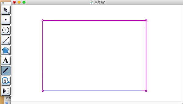 工具栏依次是选择工具(实现选择,及对象的平移、旋转、缩放功能)、画点工具、画线工具、画圆工具、文本工具和对象信息工具。在选择工具和画线工具按钮上按住鼠标左键停留片刻,会弹出更多的类型工具;选择对象的方法可以选择点按、按Shift点按或拖动等方式选中对象。