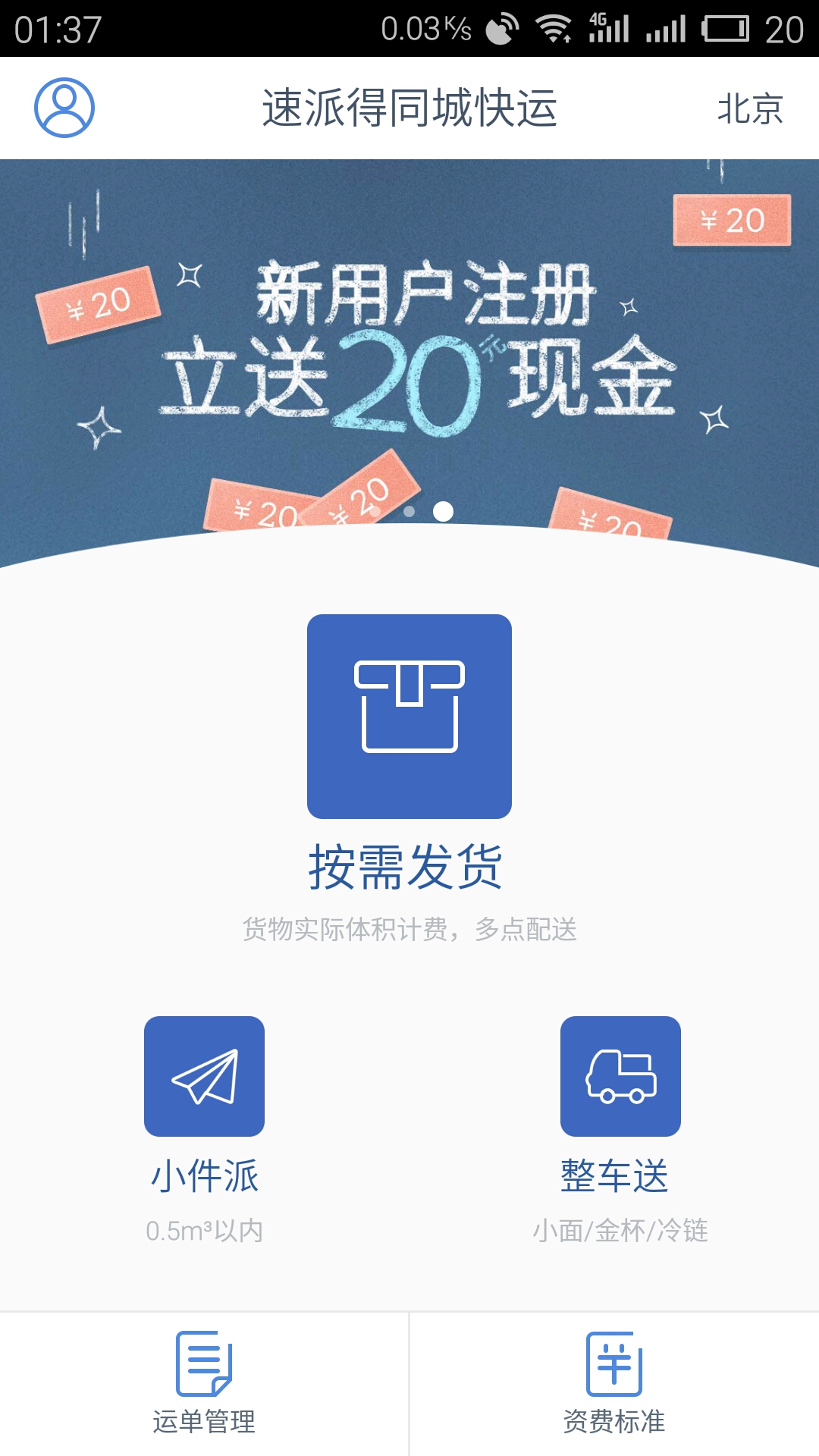 速派得同城快运服务平台以自主搭建自身网站为主,配以司机响应系统(App)、以及智能路由调度引擎系统,将所有有效运力进行整体调度,从而形成速派得特有的商业特点,1小时响应、当日送达、7*24小时服务,按方计费的新模式。【软件特点】