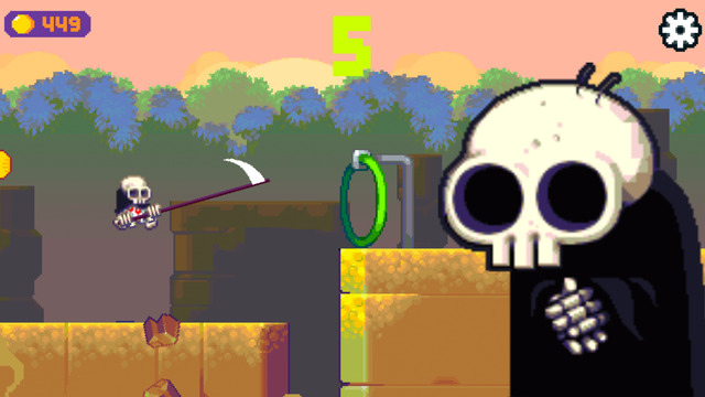 骷髅撑杆跳是一款像素风格的动作闯关游戏,本款游戏采用撑杆跳的玩法,玩家在游戏中需要通过撑杆跳来躲过重重障碍,并且去获得金币,借此来解锁更多厉害的人物角色!
