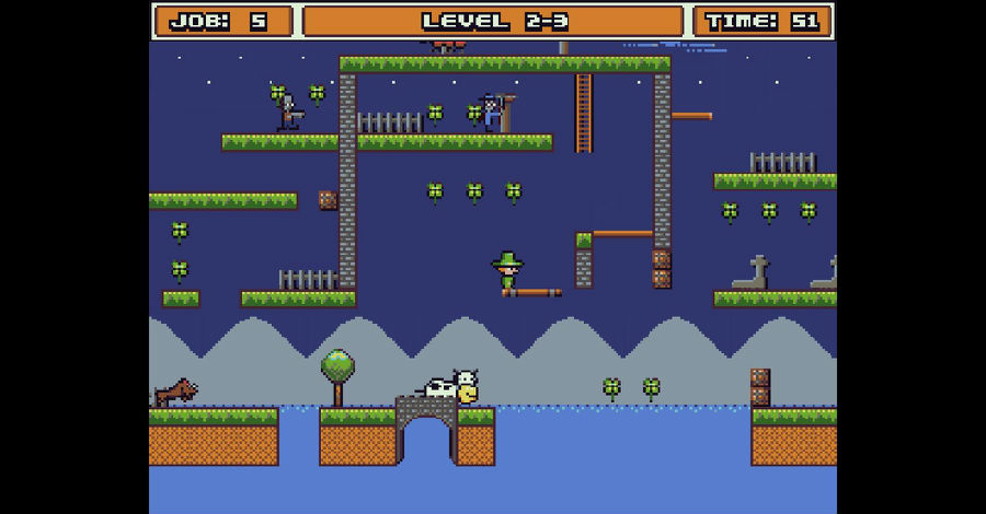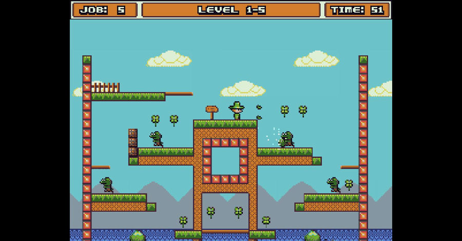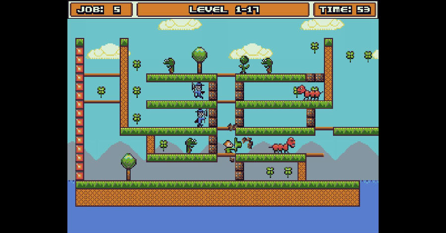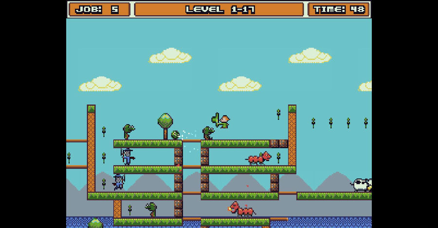 作业的小妖精是一款像素风格复古的休闲小游戏。这款游戏不论是画面上还是操作上会让你联想到小时候玩的玩超级玛丽等经典游戏相同的感受。游戏画面上虽然比较粗糙,但是玩法上还是很经典的,游戏玩法简单,收集所有的树叶,同时要躲避障碍物,或者是杀掉挡在你前方的敌人,会出现一扇门,进入即可过关。喜欢这类游戏的玩家不妨下载一试。