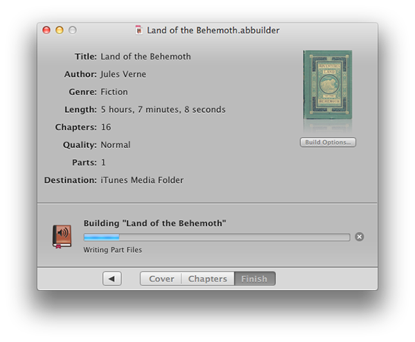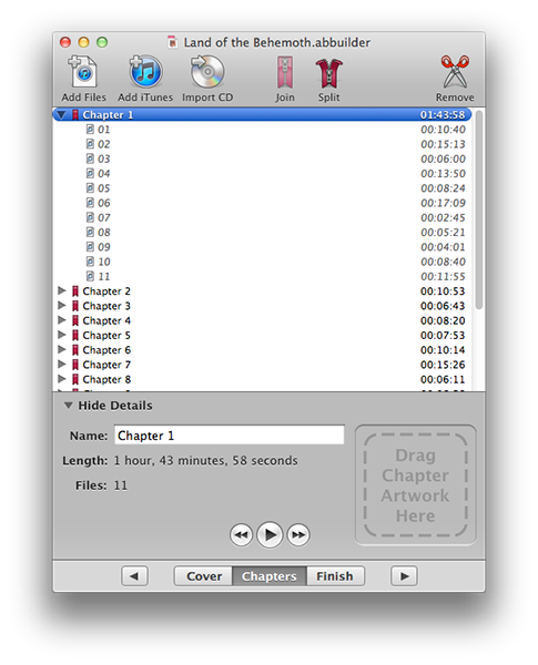 Audiobook Binder for Mac可以帮助我们显示作者和标题信息,显示封面图案,它还拥有可调节音频转换性能:单声道和立体声,采样率。当转换完成时自动把M4B文件添加到iTunes媒体库,不需要用户手动添加。如果我们需要处理的读物太多,它能分割处理大量的有声读物。