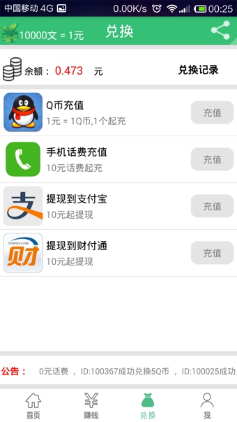 5.礼品兑换,可兑换移动/联通/电信充值卡话费、Q币、支付宝,现金话费随你拿