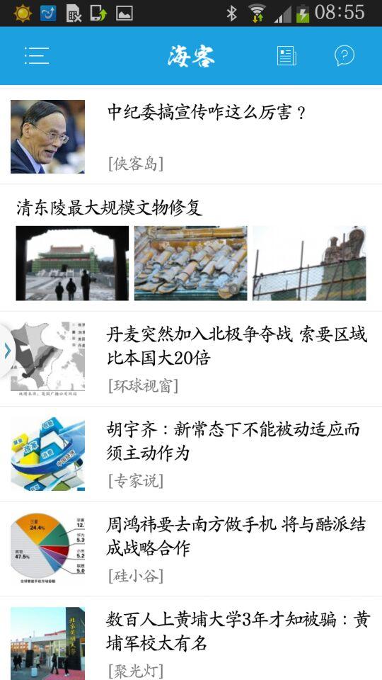 在“海客”,你可以指点江山,“我的手机我做主”,感受“海客”为你带来的全新用户体验,随时随地接受最新鲜的资讯、最热辣的解读。在“海客”,你可以足不出户,把握世界局势的脉搏,前瞻全球经济动向。最有特色的新闻盛宴将尽在你“掌”握。