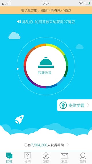 哪里不会拍哪里,遇到难题,赶快拍照去问问他。魔方格作业神器,每天都离不了的学习帮手,学习宝贝。让妈妈再也不用担心我的学习。 参与讨论分享做任务,将难题赶尽杀绝,让红包填满腰包。 当学霸,就来魔方格学习神器回答问题,荣登光荣榜,你就是下一个学霸君。 快乐学习,互帮互助,同桌的你还在苦逼的题海跋涉?全国魔粉推荐的学习宝贝,你值得拥有。