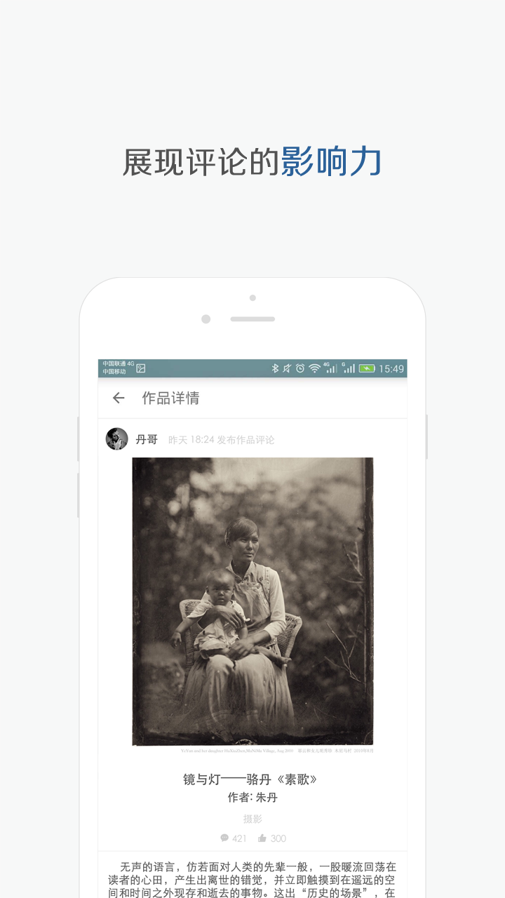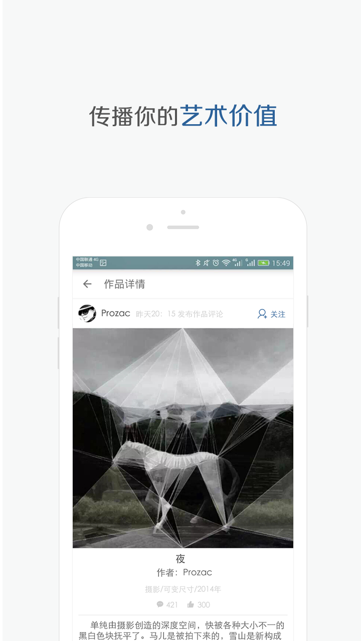 泛艺术(社区)是由当代国内外具有影响力艺术家与评论家联合发起的国际泛艺术大联盟,是最具影响力泛艺术评论社区。这里是艺术爱好者、艺术创作者、评论家、策展人和艺术投资人的在线乐园。 泛艺术(社区)旨在开创一个互联网时代艺术世界的新起点,引领新一轮艺术市场的繁荣,并最终将艺术消费渗透到大众日常生活之中。 泛艺术(社区)是一个通过精准用户群体和海量数据的力量,为艺术作品赋予价值的平台。每天有大量艺术从业者围绕作品展开精彩评论与讨论。【软件特点】