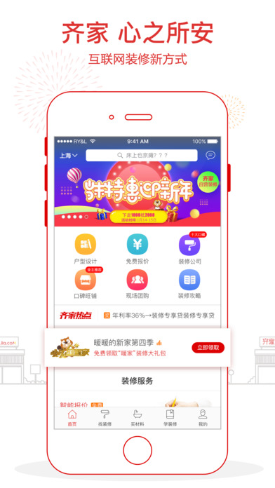 1. 齐家网品牌特卖轻松购,每周二上新,装修折扣周周有惊喜!2. 装修服务一站式,免费监理、免费设计、免费报价,装修公司和设计师,这里最多最全