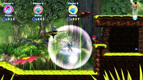 蓝精灵2XBOX360版游戏中,玩家可以进行单人游戏或者与好友合作游戏,并选择影片中的9个蓝精灵加入最多支持4人同时游戏的多人冒险。每一个蓝精灵都拥有自己的特殊能力来闯过6个不同世界的30个关卡。无论你是扮演投掷魔法药水击晕敌人的蓝爸爸,践踏坏蛋的厌厌、摆出帅气姿势来帮助其他玩家获得道具的帅帅、每个动作都能在对抗敌人,例如阿兹猫、格格巫、淘气精灵时帮上大忙。
