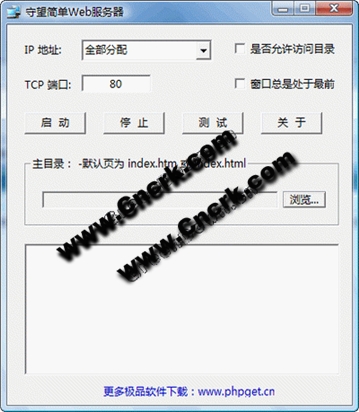 守望WEB服务器 V3.0 简体中文绿色免费版 这个WEB服务器是用C语言开发的 ,其特点是界面精美,易于使用,还有信息流量统计。整个WEB服务器就是 一个EXE可执行程序,无需任何安装,不修改注册表,删除时直接删除所有相关文件就行了。程序放在任何目录均可运行。如果开发小型的Intranet系统可以方便的将本服务器及配置文件集成进新做的程序里面,不用在如何另外安装web服务器上浪费脑筋。