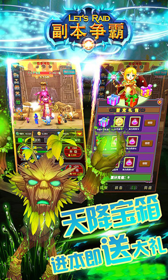 《副本争霸》是一款魔幻风格的休闲RPG,游戏具有3D画面,次世代游戏品质。它讲述了玩家扮演一名死亡骑士,带领精心选取的10名小伙伴一路挑战副本,最终击败终极BOSS,拯救世界的故事。首款吊打boss的3D休闲RPG,无CD反复收割,爆炒大螺丝、清蒸傻飞龙,更有黑龙妹妹等着你,时间就是金钱,快来组团吧我的朋友!【游戏特点】