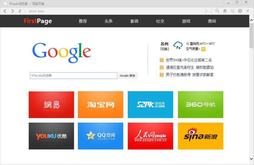 VPanda浏览器是一款很简洁大方的浏览。VPanda浏览器很轻巧,而且简单实用。VPanda浏览器灰色系列的大方设计很适合不喜欢浏览有太多功能的朋友使用【软件特点】