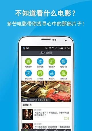 汇聚全网热播电视剧、综艺、最新电影、动漫、美剧、微电影、影讯、娱乐、音乐、体育等海量高清视频,精选优酷、腾讯、爱奇艺、pptv、土豆、搜狐视频等多家视频资源,免费在线观看、高清流畅播放,支持微博、微信、QQ、朋友圈一键分享。除此,劲爆游戏、图解电影、高清海报、电影原声免费提供,一键收藏下载。多芒电影:“倾心一荐,妙不可言!”海量淘片太累了?多芒电影合辑倾心为你推荐精彩影片!你只需要看好、听好、玩好,发现好东东的任务统统交给我们吧!【软件功能】