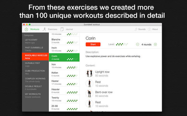 - 每一个运动都有详细的描述,照片和视频指令;