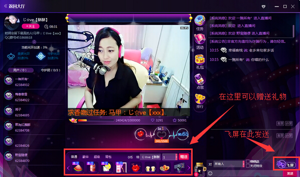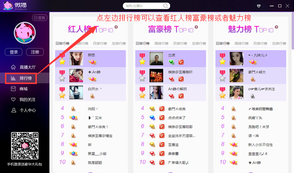 点左边排行榜可以查看红人榜富豪榜或者魅力榜。