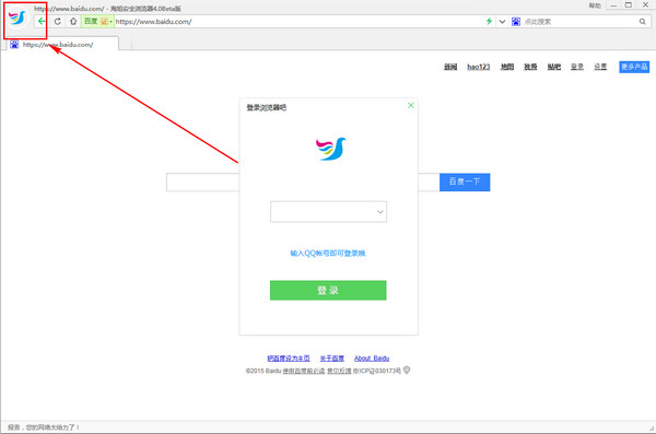 使用浏览器其他功能首先要登录浏览器,点击图标然后点击登录就可以了,不需要输入QQ号