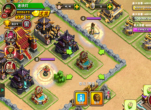 策略经营方面,玩家也能建造自己的城池,休养生息强大武备。玩家还能带领军队讨伐贼党,掠夺其他玩家的城池。