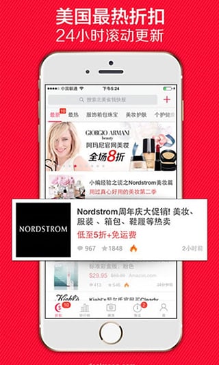24小时不间断播报折扣信息可按照订阅要求推送指定商家的打折快讯