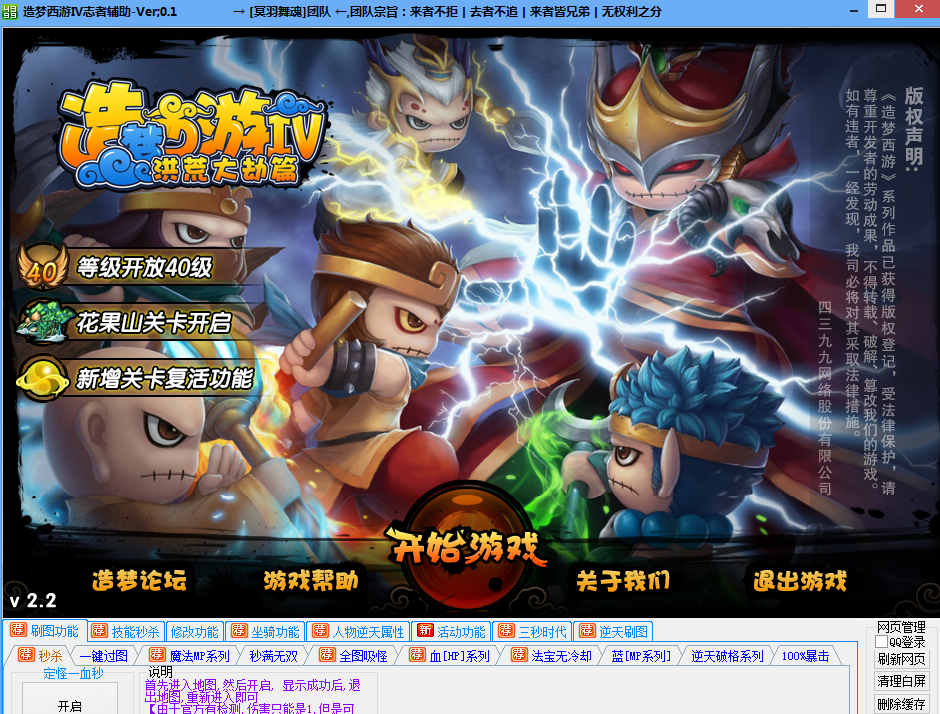 造梦西游4志者辅助完全免费提供,绿色无广告,拥有秒杀、一键过图、魔法血量、逆天属性等功能,是玩家升级挂机必备神器。