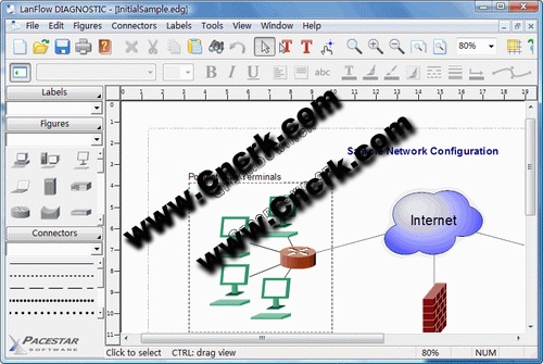 PaceStar LanFlow Net Diagrammer V6.12 英文绿色免费版 LanFlow是一个针对电脑网络而设计出来的流程图绘制软件 ,和一般流程图之类的软件相同,这个软件可以让使用者花费不太多的力气,就可以制作出网络的流程图。试用版本的功能性与正式版完全相同,只是不能让使用者制作大型而复杂的流程图,并且在打列时会有试用版的提示,其它像是说明文件的部份都是完整的,使用者可以直接参考说明文件来了解软件如何使用