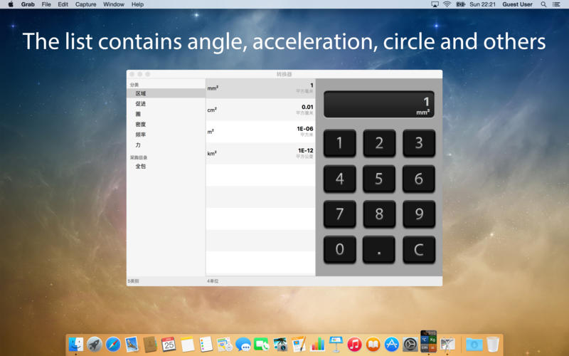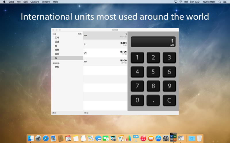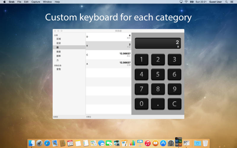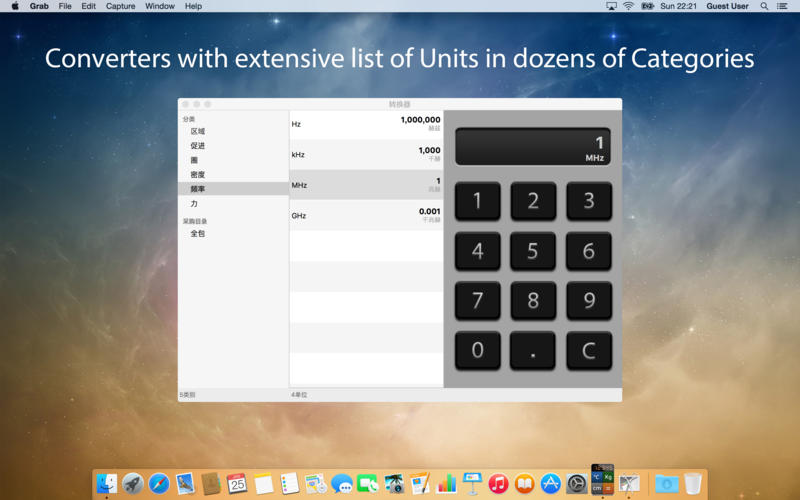 Converters for Mac计算比以往任何时候都更快。它不仅仅是一个转换,它能帮助我们将手头很多单位类别转换。Converters for Mac一个有价值的工具,用于专业人士,学生也来解决日常问题。Converters for Mac包含6大类25小类单位转换,也能扩充到额外的10大类60多个单位转换。每个类别有专用的转换界面。直观、易于使用。