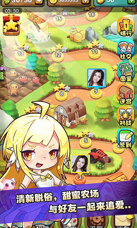 《农场日记》是一款风格清新的消除益智类游戏。经典的消除玩法,独特的RPG战斗,多样的游戏模式,加上趣味的角色培养,体验的全新的消除乐趣。农场的深处隐藏着什么秘密呢?爱丽丝,白雪公主,青蛙王子与农场少年又会有什么样的故事呢?你想知道农场少年喜欢的女孩是谁吗?那就与我们一起体验农场的生活,一起用指尖创造奇迹,一起踏上全新的冒险吧!