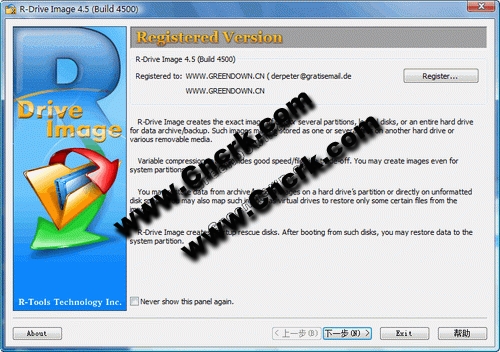 R-Drive Image V4.6 Build 4600 英文绿色特别版 磁盘镜像创建和管理工具,能够按照字节copy硬盘,分区和逻辑磁盘,并且可以采用各种压缩等级,并且不会影响windows和其他应用程序的正常运行,生成的镜像文件可以采用多种方式存储,如光盘,zip盘,jazz盘等