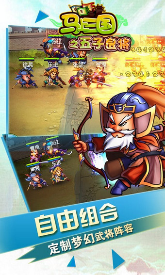 《马上三国》:游戏有着独特的九宫格战斗模式,在将星图、精英关卡、跨服对战中展现排布布阵的能力,百位三国人物任意组合,手持青龙偃月刀,脚骑赤兔马,奔赴三国战场!收集武将,组合技能,激发潜在的能量;九宫布阵,击溃敌人,智慧的博弈成就三国霸主!巅峰对决,不容错过;或名垂千古,或默默无闻,《马上三国》等你来战!