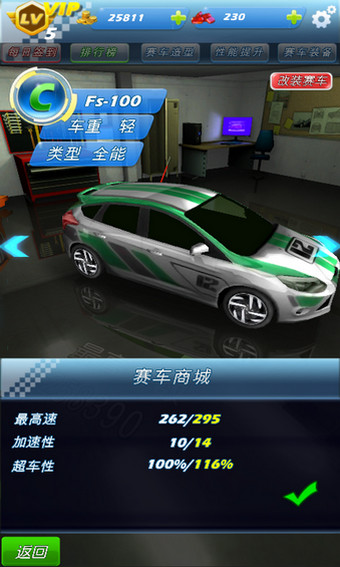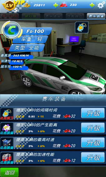 1、各种现代化的游戏风格和游戏难度2、玩家可以装饰完善自己的车