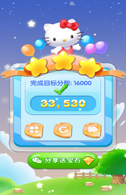 《Hello Kitty快乐消》设置了四大核心玩法:普通关卡,运用全新的无规则连线消除玩法并添加物理碰撞引擎,使消除过程变化莫测。游戏过程中,不同的连线数量和形状,会产生不同的特效消除道具,消除爆炸效果缤纷炫丽,消除体验更加刺激!