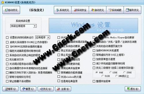 WINDOWS设置是一个WINDOWS的系统多功能工具,可以优化系统,管理服务,IE安全,操作限制,硬盘隐藏,硬盘禁用等等很多功能。 Name:lzq9888 Code:303119810