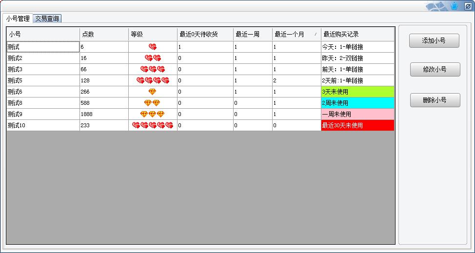 自带小号管理,刷单记录功能,可自定义自行修改。