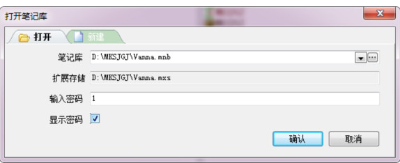 1、双击执行d:\MKSJGJ\MKSJGJ.exe,输入示例笔记库的登录口令(数字1)。然后点“确认”。