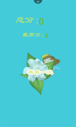 栀子花飞是一款有着简洁画面的休闲类游戏!游戏中待栀子花飘落下来,快到黑线下时,就点击栀子花,让它上弹,栀子花上弹次数越多,所获得的分数越多;若是栀子花落地了,那游戏就out了。这是一款很nice的游戏,等你来挑战。
