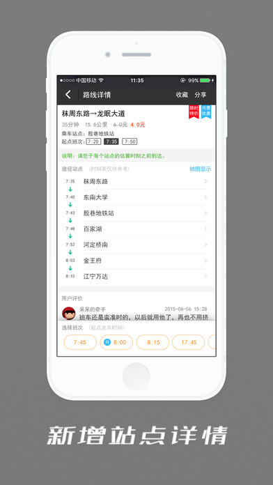 “巴哥驾到”深挖上班族通勤需求,解决以白领为主要人群上下班出行拥挤的问题。在南京区域,针对上下班推出“定制巴士班车”服务,上班族可通过巴哥驾到的平台上传需求,包括时间、地点、路线等,平台通过后台大数据计算和匹配,安排巴士接送。【更新日志】