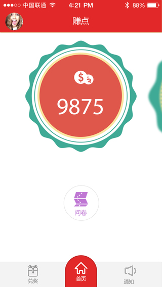 赚点是一款基于有奖调查的手机赚钱APP,由知名的问卷调查网站集思吧诚意推出! 用户只需要回答问卷就能赚取奖励兑换Q币、现金,手机话费和iPad等各种奖品。是被验证的目前最真实,最流行的赚钱方式。【人人可参与】赚点的调查问卷收集网民对产品和服务的观点,只要有智能手机的用户都能参与。