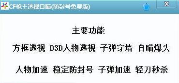 CF枪王透视自瞄辅助是一款专为穿越火线CF玩家打造的游戏辅助外挂,这款辅助支持方框透视、人物透视、子弹穿墙、自瞄爆头、人物加速、子弹加速、轻刀秒杀等等功能,喜欢玩CF的朋友快来免费下载使用吧!