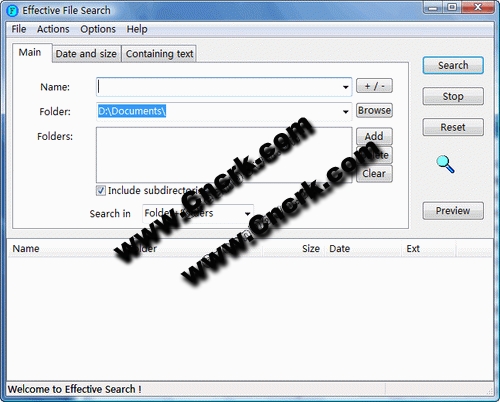 Effective File Search V6.3 多国语言绿色特别版 Effective File Search 可以让你快速的完成文件查找分类的工作,除了最基本的文件名搜寻功能外,他还提供了几项比较特别的功能:可以按照文件名的日期以及大小来作排列对搜索结果直接作修改的动作,如改名,删除或移动等,可以对文件内容作纯文字或是十六进制进制文字的搜索,整合在 Windows Explorer 中,所有搜索的结果与动作都可以纪录成单一文件