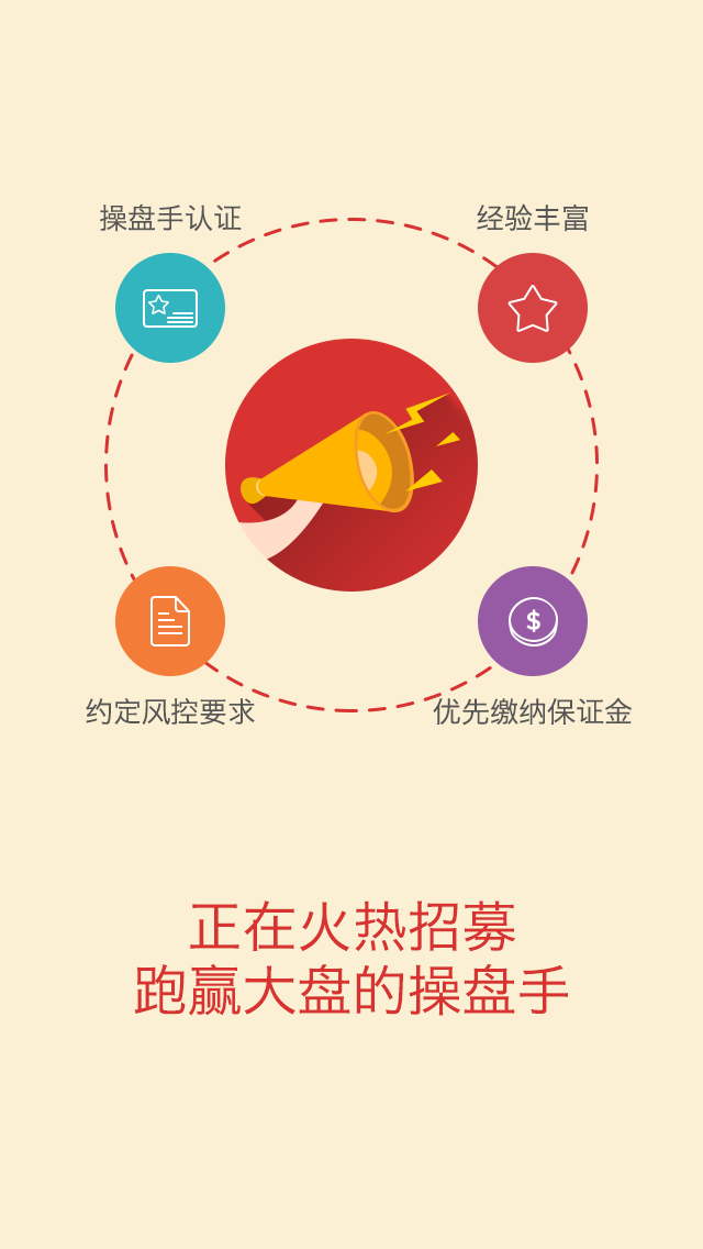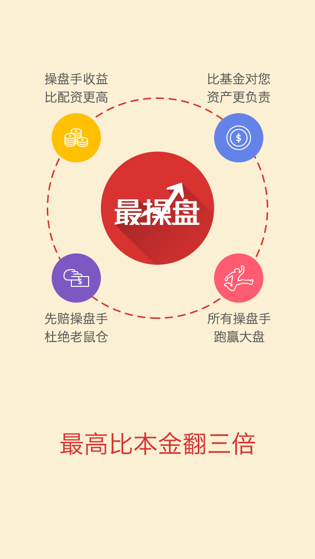 最操盘是由资深金融专家和互联网精英共同打造的国内第一个代客理财软件,比基金对您的资金更负责的理财平台。操盘手私募精英可定制发行股票型理财产品,投资者可寻找最牛操盘手管理自己的资金共享股市高收益!【软件特点】