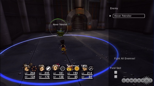 与《勇者斗恶龙》系列一样,《蓝龙》的系统并没有太多的噘头,以简明为特点,但又不乏有其独特的魅力之处。游戏最醒目的即是如召唤兽一般巨大的“影子”,这也是战斗的唯一手段,游戏中采用类似CTB的回合制进行战斗,战略的运用表现得尤为重要。届时,角色身后那强大的影子将施展各自华丽的特技来打倒对手,而使用影子时角色特写也将在16:9的画面左上角作一番精彩的演出,整个战斗过程都充满着热血和激情。 如果对踩地雷或者接触式遇敌方式感到疲倦的话,那么《蓝龙》又会带给大家另一层惊喜,那就是游戏中的地图技能:“防护盾”系统,开启防护盾在迷宫中行走,低等级的怪物就会自动逃跑,如果遇到则会被直接打倒。