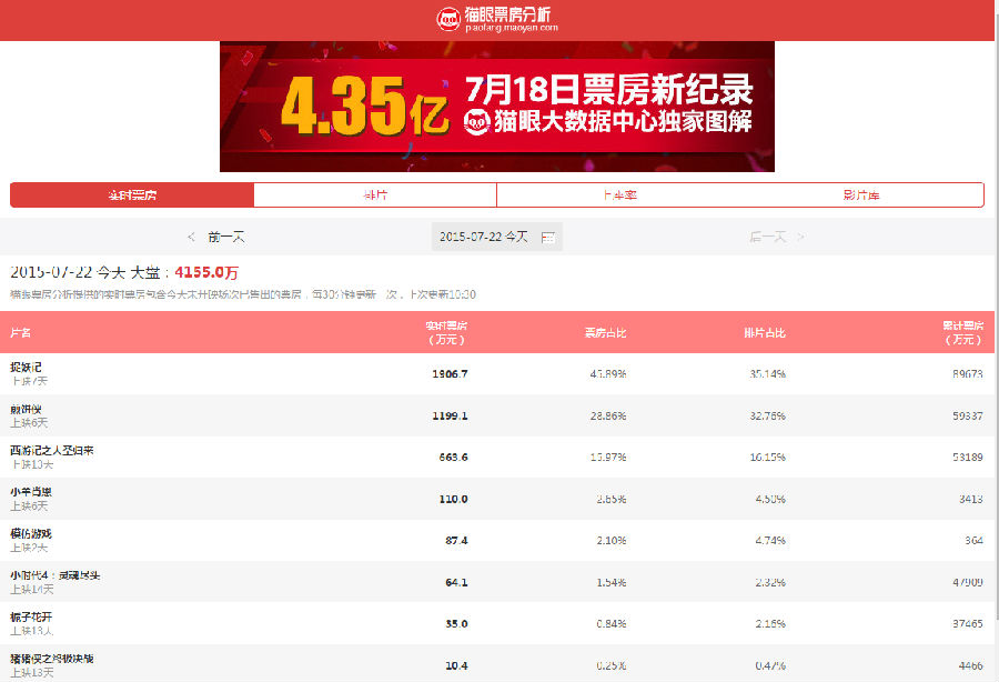 1、实时票房:国内最精准的实时票房查询工具,及时、准确、高效掌握电影市场实时动态;2、排片:国内最超前的排片查询工具,提前一个月查询热门档期排片,随时掌握各影片、各城市、各大影院的排片场次及占比;